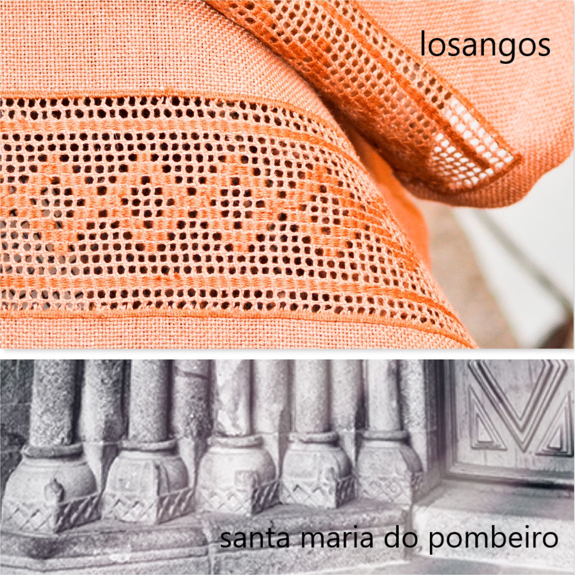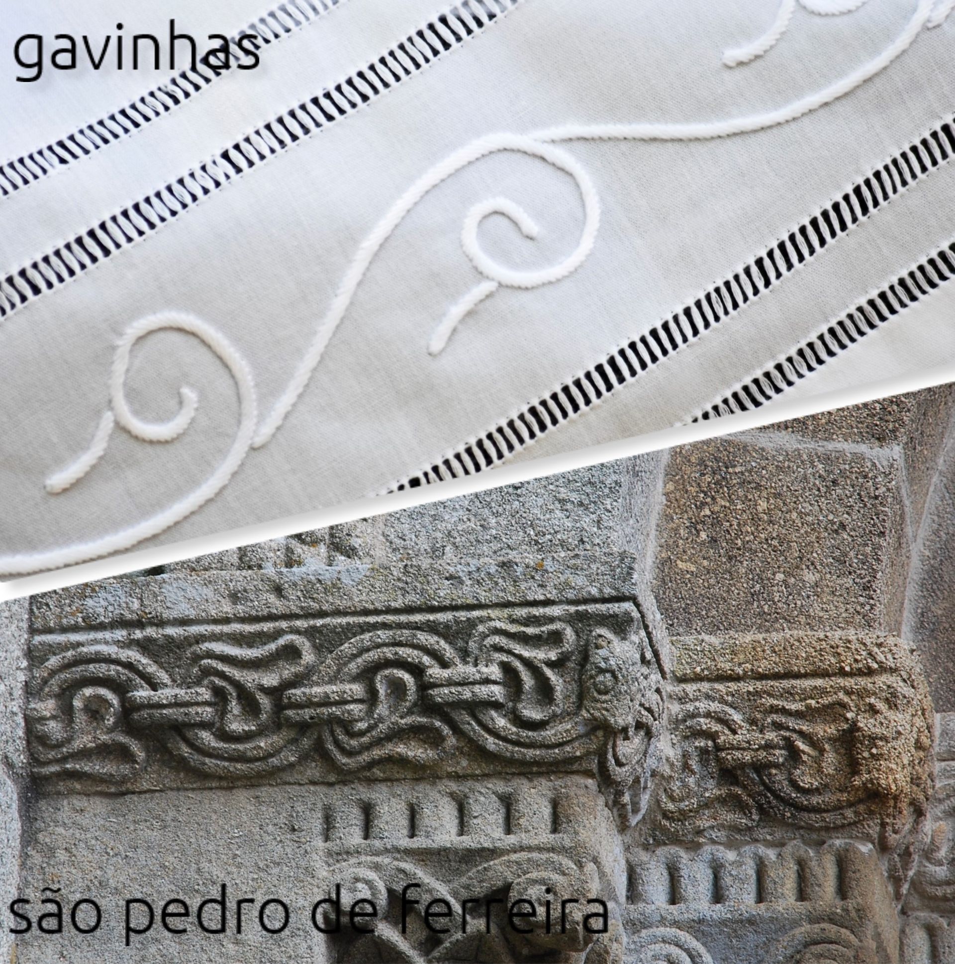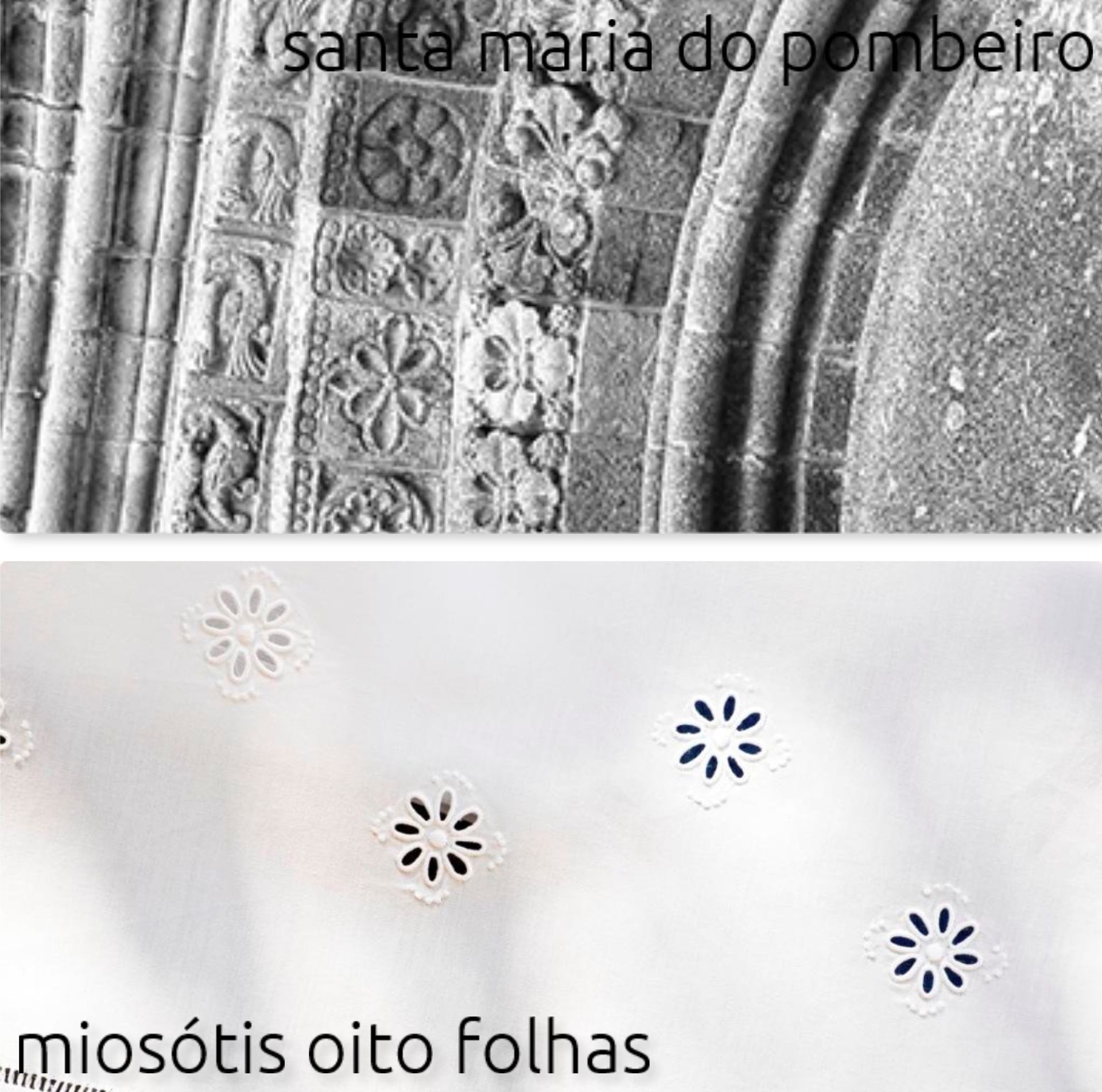 when visiting the monuments of the Route of the Romanesque, we were surprised to see that the motifs in the region's embroidery are similar to the iconographic sculptures on its portals. From these similarities, and after much research, Românico Embroidery was grow. New and innovative concept.