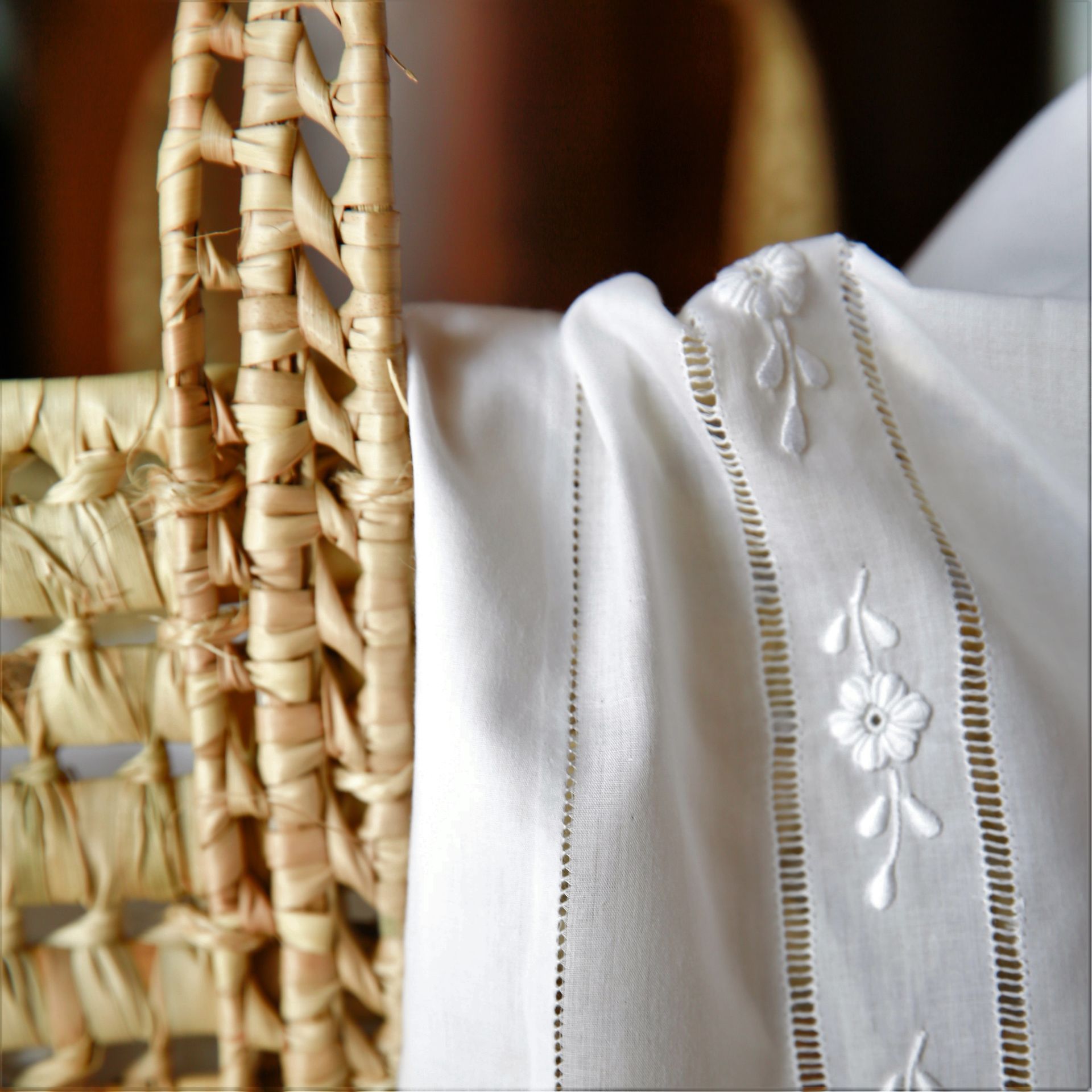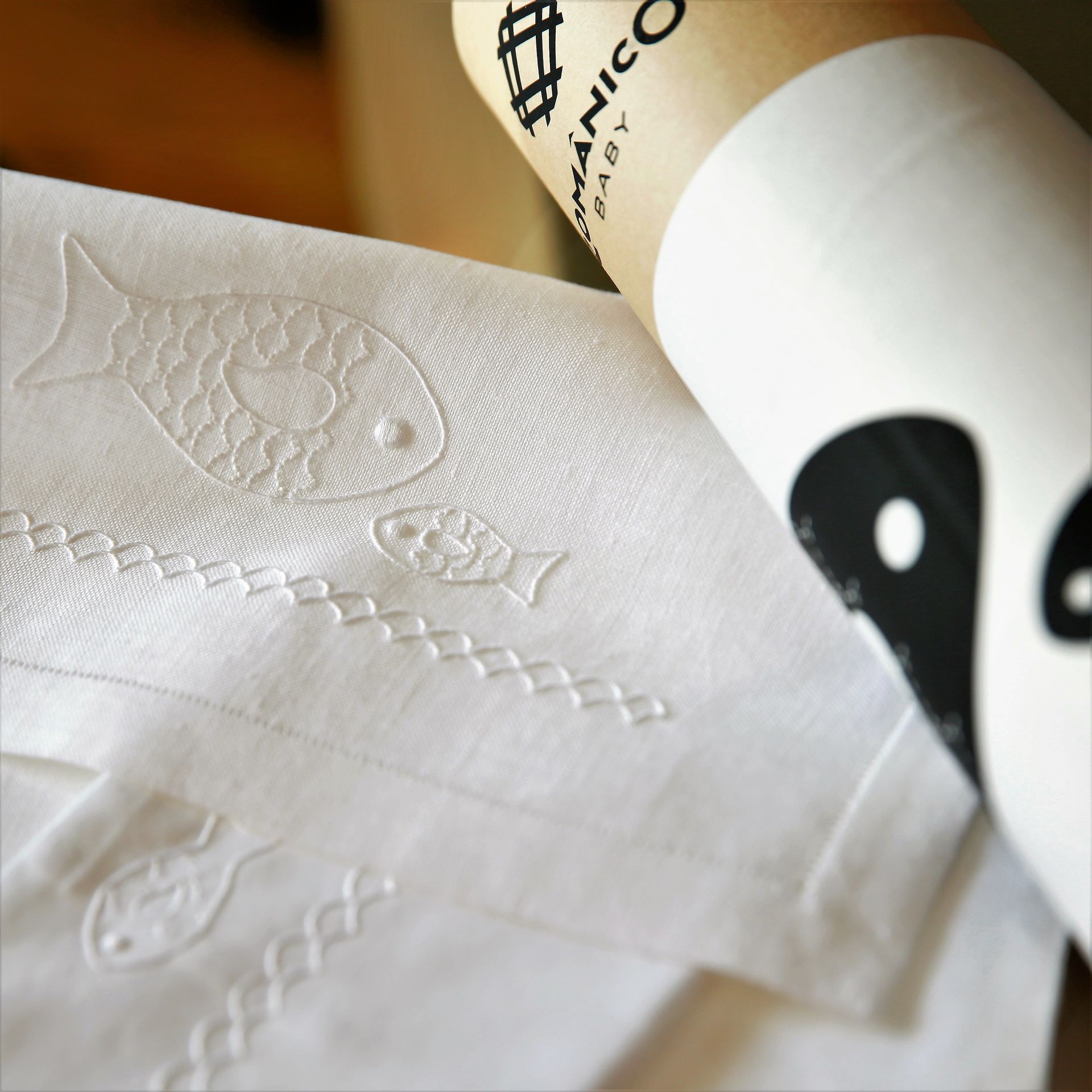 delicately hand-embroidered, in pure and soft cotton textiles, comfortable for the most sensitive skin,